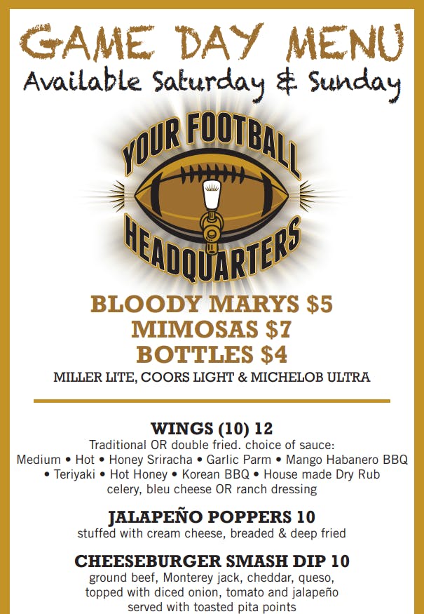 Tap Into Football Game Day Food & Drink Specials