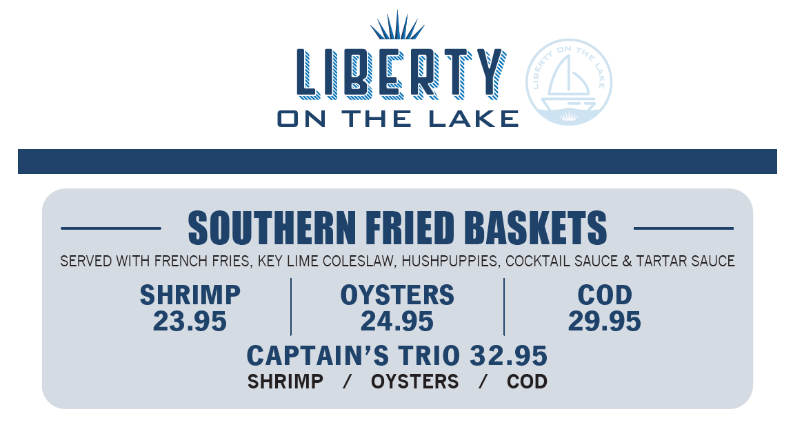SERVED WITH FRENCH FRIES, KEY LIME COLESLAW, HUSHPUPPIES, COCKTAIL SAUCE & TARTAR SAUCE-