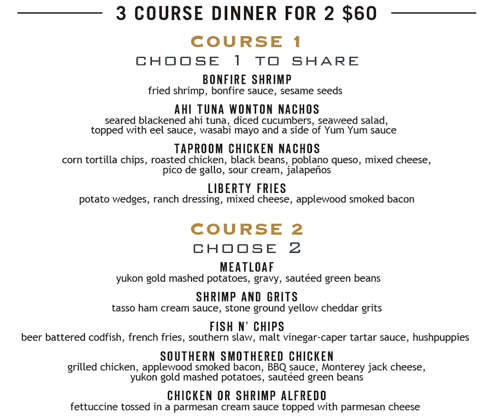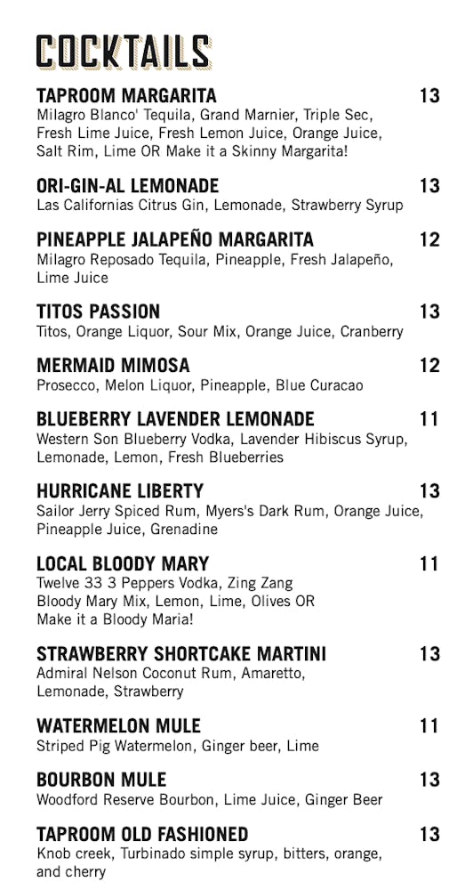 - Taproom Tasting Menus