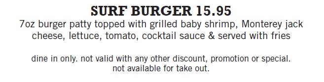 served with French Fries Add the following to any burger for an additional charge of Applewood Smoked Bacon 1.50 • Fried Egg 1.00-